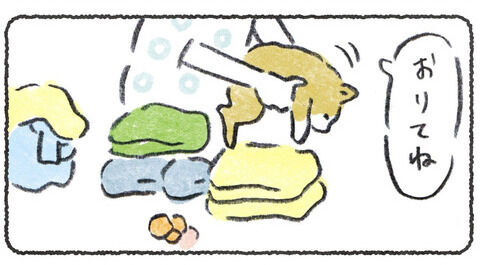洗濯物の上で寝転びたい犬VS飼い主 ...