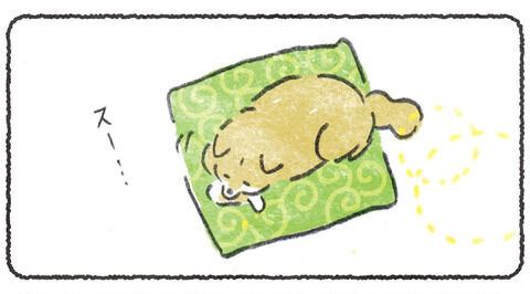 クッションから離れずにお昼寝する犬 ...
