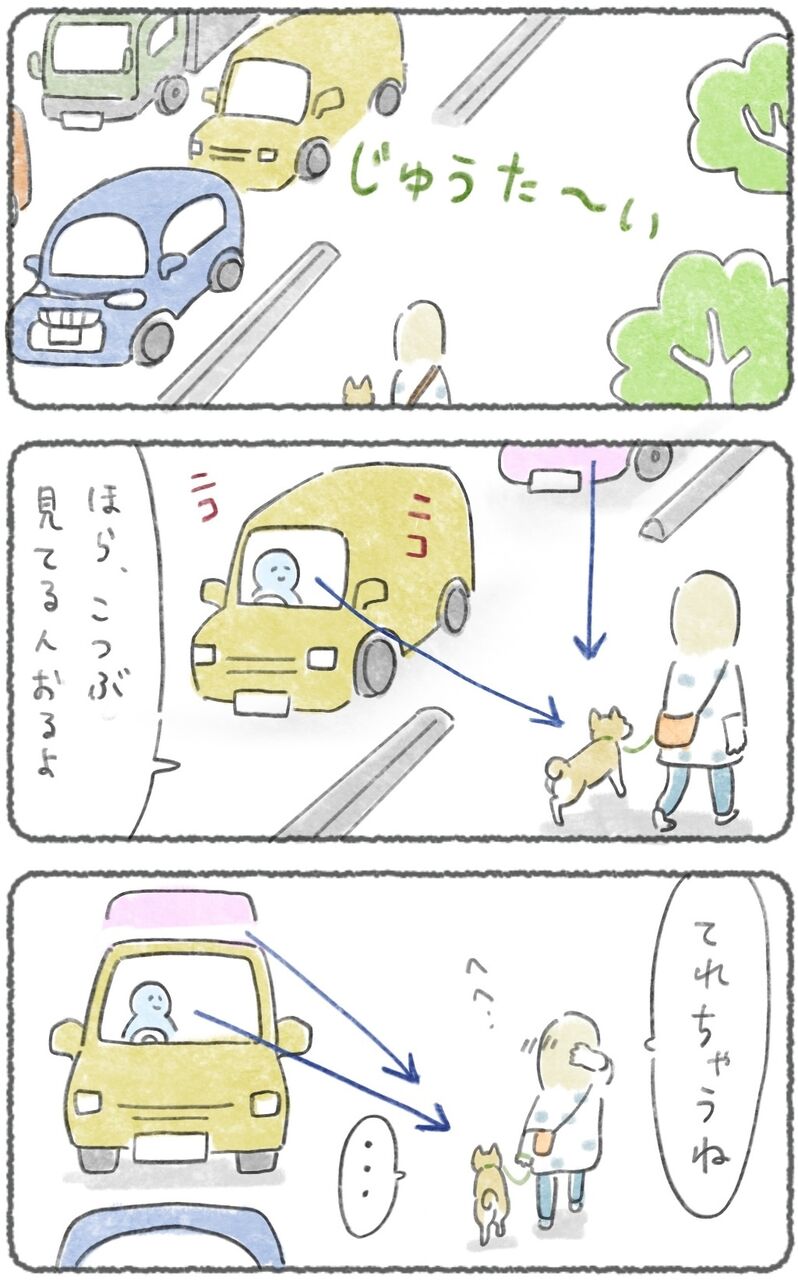 運転中に散歩してる犬を見てるのを見られてるんだなぁと知る