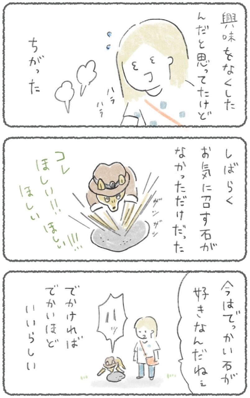 トレジャーハンターこつぶ 2025年04月22日 <他の意思つよ話>落ち葉のトレジャーハント 諦めない意思の強さ 過去イチはこの時 \石好きなお話は本に収録されてるよ!/>>amazonこちら\マンガの通知がくるよ!/_________________________________ 「【シーズン4】web🏠こつぶ7歳〜」カテゴリの最新記事 タグ :#絵日記#コミックエッセイ#暴れ#散歩#ゲッソリ#意思つよ#ピュア#9歳 < 前の記事次の記事 > コメント コメント一覧 (3) 3. ポポロン 2025年04月30日 01:55 トレジャーハントの経験を重ねた結果、石の価値はデカさ、デカさこそすべて🤔 って結論に至ったのかと思うと、愛しいです 0 キリ がしました 1. 梅ジャム 2025年04月22日 18:08 まさか…持って帰ったりしないよね…と思いながら読んでたらそのまさかでニッコリ こつぶくんもさぞ喜んだ事でしょう… 帰宅後もその石は推し石のままなのでしょうか…? 0 キリ がしました 2. キリ 2025年04月28日 18:36 >>1 散歩の途中で嘘のようにスッ..と飽きる瞬間があるのでその時に手放してます! (その時がくるまでは手放せない とも言う) 0 キリ がしました コメントフォーム 名前 コメント 記事の評価 リセット リセット 顔 星 情報を記憶 コメントを投稿する
